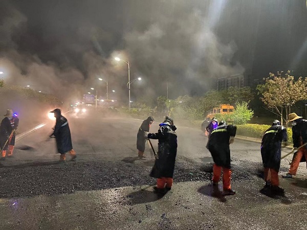 此次抢修任务,集中抽调30余名����� �������Ƴ������������ �������Ƴ����������� �������Ƴ������������ �������Ƴ�������应急抢修人员,3台压路机、1台装载机、1台摊����� �������Ƴ������������ �������Ƴ������������ �������Ƴ������������ �������Ƴ�������铺机等共计10余台次机械车辆作业。����� �������Ƴ������������ �������Ƴ������������ �������Ƴ������������ �������Ƴ�������在抢修中,大家严格按照“精致市政����� �������Ƴ������������ �������Ƴ������������ �������Ƴ������������ �������Ƴ�������”相关要求,完成了基础换填、沥青铺筑近30����� �������Ƴ������������ �������Ƴ������������ �������Ƴ������������ �������Ƴ�������00平方米,沥青摊铺组应急反应迅速,快速完成����� �������Ƴ������������ �������Ƴ������������ �������Ƴ������������ �������Ƴ�������了此次紧急抢修任务,恢复了道路交通。