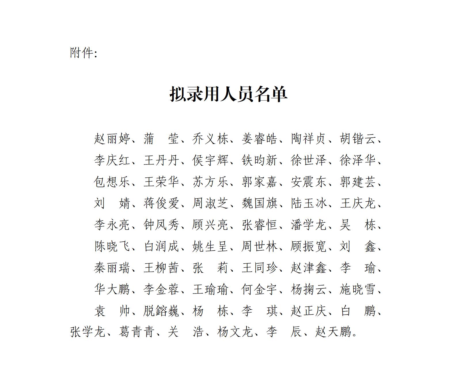 拟录用人员公示公告