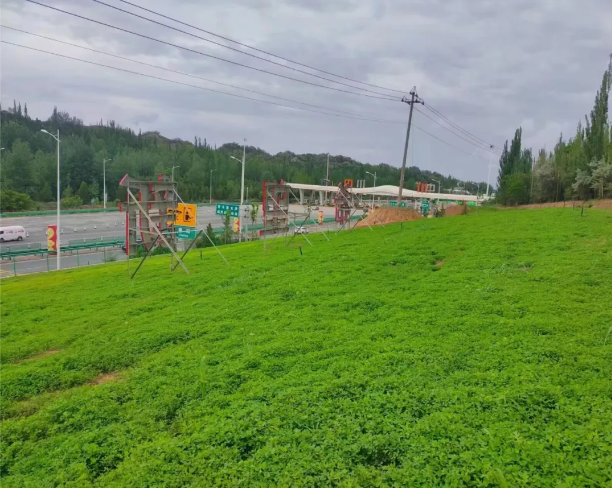 “我们根据建设景观生态和海绵城市的基本原����� �������Ƴ����������� �������Ƴ������������ �������Ƴ����������� �������Ƴ�������则,改造出有利于保水排水以及植物����� �������Ƴ������������ �������Ƴ������������ �������Ƴ������������ �������Ƴ�������生长的地形地貌条件”,绿洲公司现场负责人����� �������Ƴ������������ �������Ƴ������������ �������Ƴ������������ �������Ƴ�������介绍说,“地形地貌改造是否到位对后续植物的生����� �������Ƴ������������ �������Ƴ������������ �������Ƴ������������ �������Ƴ�������长十分关键,目前我们在机场8公里项目高速收费����� �������Ƴ������������ �������Ƴ������������ �������Ƴ������������ �������Ƴ�������站出入口西侧边坡及省道S101与机场高����� �������Ƴ������������ �������Ƴ������������ �������Ƴ������������ �������Ƴ�������速夹地改造地形地貌55482平����� �������Ƴ������������ �������Ƴ������������ �������Ƴ������������ �������Ƴ�������方米。在植被种植方面,模拟自然生����� �������Ƴ������������ �������Ƴ������������ �������Ƴ������������ �������Ƴ�������境,采用乔灌草、落叶植物与����� �������Ƴ������������ �������Ƴ������������ �������Ƴ������������ �������Ƴ�������常绿植物相结合的方式,分区种植云杉、国����� �������Ƴ������������ �������Ƴ������������ �������Ƴ������������ �������Ƴ������槐、长枝榆等乔木形成基调树种,种����� �������Ƴ������������ �������Ƴ������������ �������Ƴ������������ �������Ƴ�������植榆叶梅等灌木丰富林下群落植物,再混播����� �������Ƴ����������� �������Ƴ������������ �������Ƴ������������ �������Ƴ�������苜蓿、油菜,种植粉黛乱子草����� �������Ƴ����������� �������Ƴ������������ �������Ƴ������������ �������Ƴ�������和石竹等植被,不断改善和����� �������Ƴ����������� �������Ƴ������������ �������Ƴ������������ �������Ƴ�������调整植物生境基本条件,缩短场地形����� �������Ƴ������������ �������Ƴ������������ �������Ƴ������������ �������Ƴ�������成类自然稳定生态群落时间,形成了功能齐备����� �������Ƴ������������ �������Ƴ����������� �������Ƴ������������ �������Ƴ�������、层次丰富、色彩和谐的立体复层绿����� �������Ƴ����������� �������Ƴ������������ �������Ƴ������������ �������Ƴ�������化区”。